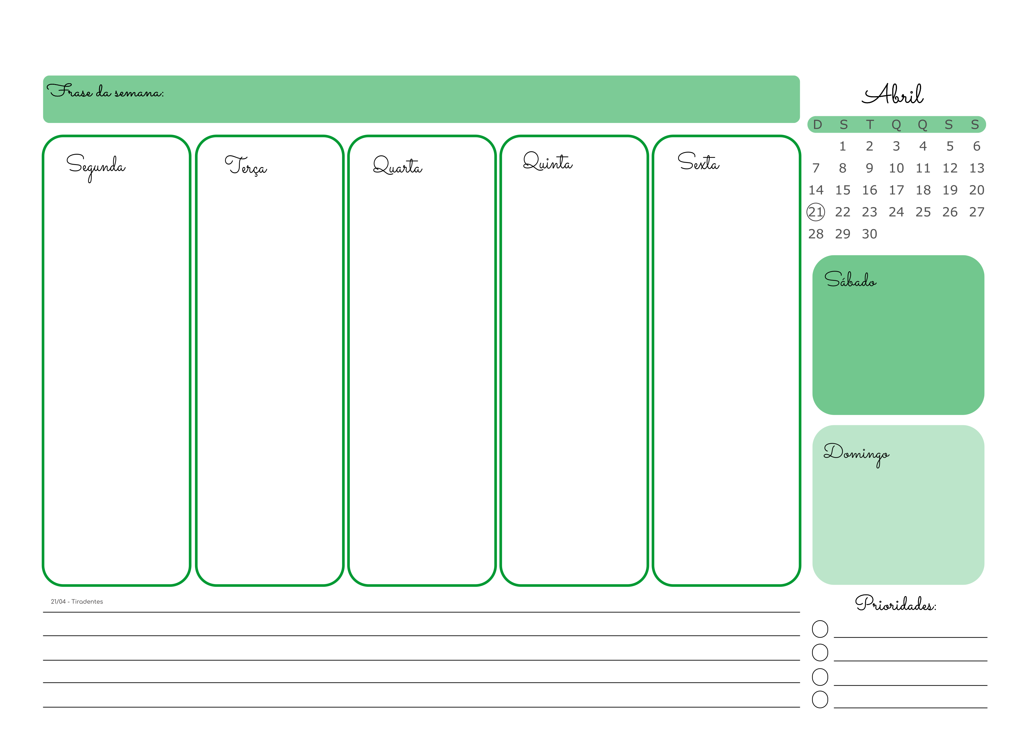 Para deixar sua semana bem organizada.